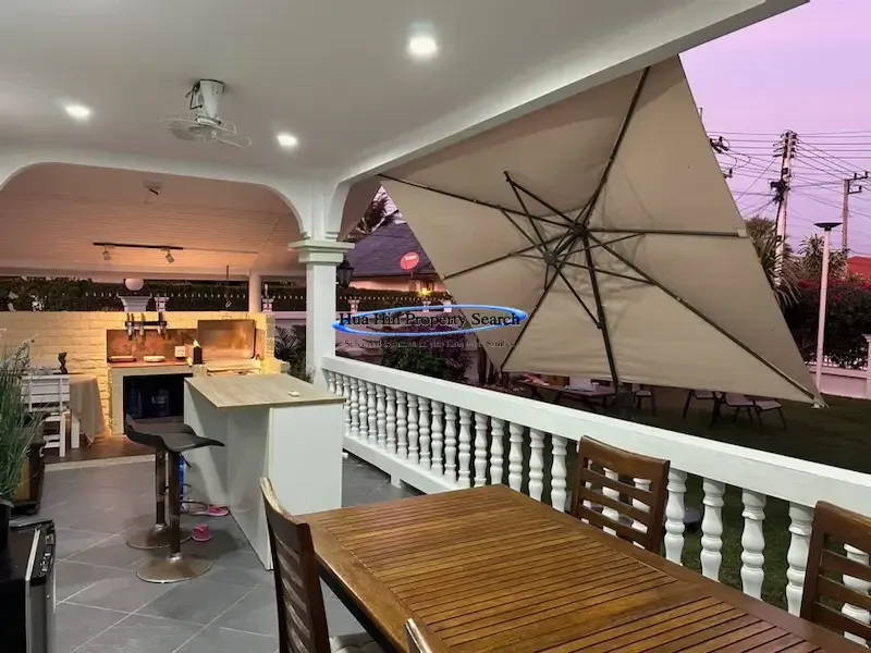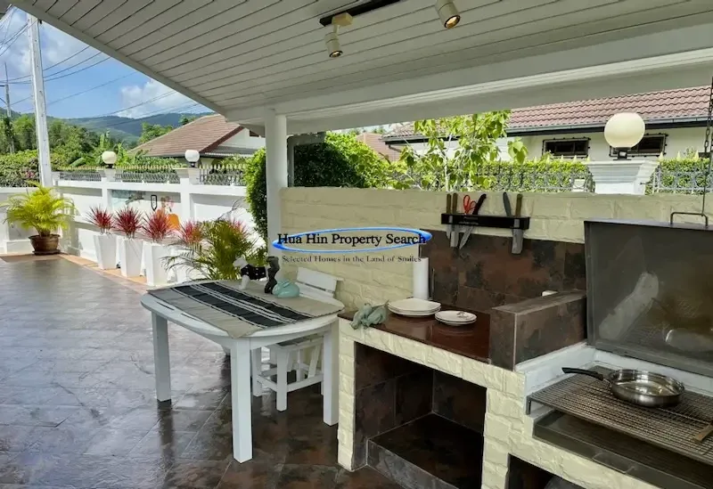Die europäische Küche verfügt über ein neues Elektrokochfeld und wird durch eine überdachte thailändische Küche im hinteren Bereich ergänzt. Die geräumige Terrasse und der überdachte Grillplatz mit Beleuchtung und Steckdosen machen dieses Anwesen perfekt für gesellige Stunden im Freien.