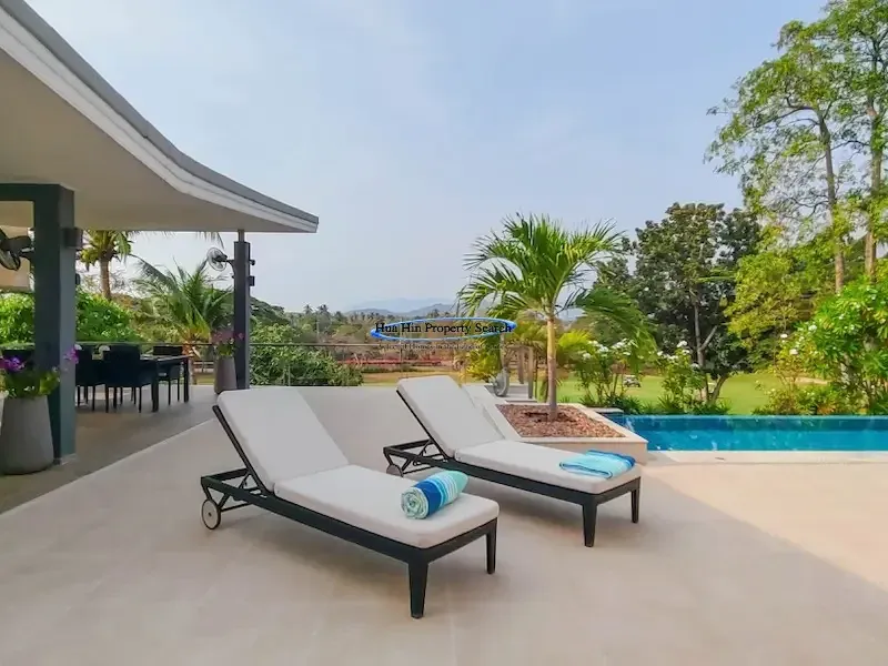 This property represents a “Trophy Asset” within the Hua Hin real estate market. The Full Chanote Title guarantees secure freehold ownership a critical factor for high-value investment. At 34.5 Million THB, the price per square meter (approx. 45,000 THB/m²) is competitive for a frontline golf villa of this magnitude and build quality. The inclusion of the lifetime membership and the self-contained guest unit adds significant value and rental versatility.