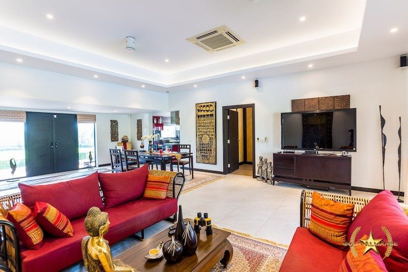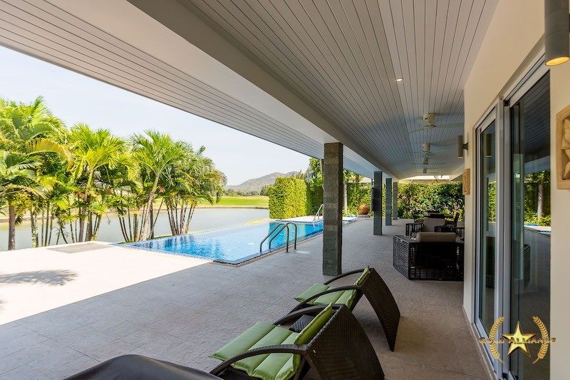 A 3 bedroom Pool Villa on the famous Black Mountain Championship Golf Course. This top quality villa features an open plan living, dining and fully fitted european kitchen, 3 good sized bedrooms and 3 bathrooms, outside is a full length covered terrace with views the golf course as well as the mountain backdrop, a lake in front of the house and the 9th Hole.