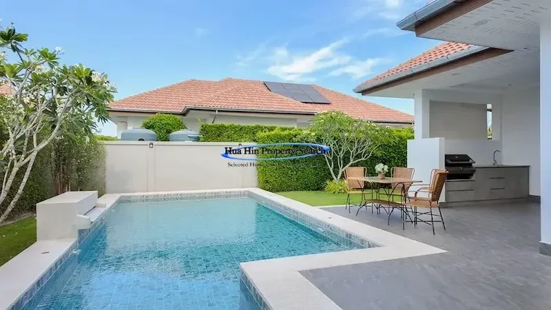 Experience refined tropical living in a peaceful, mountain-surrounded setting just 15 minutes from Hua Hin town. This exclusive villa offers privacy, comfort, and modern design—perfect for both living and investment.