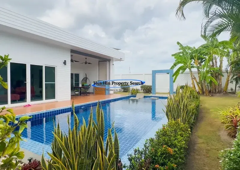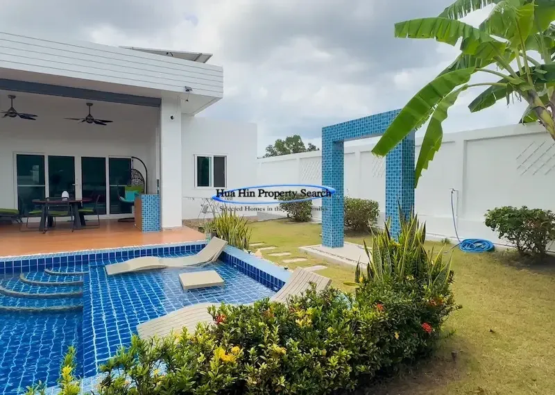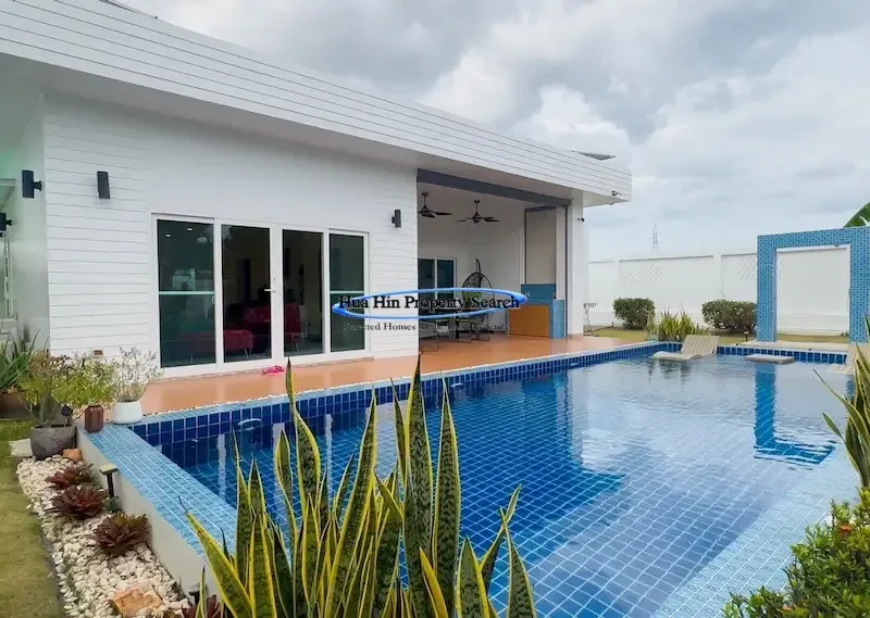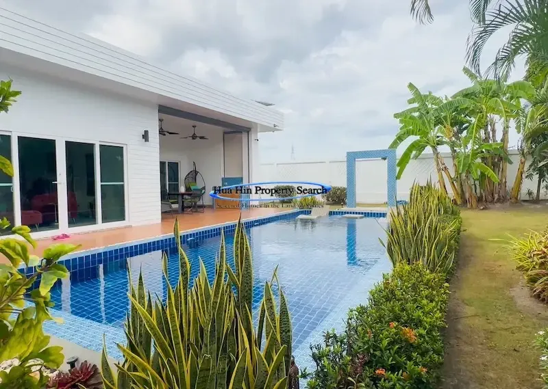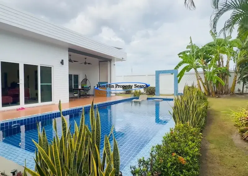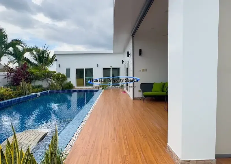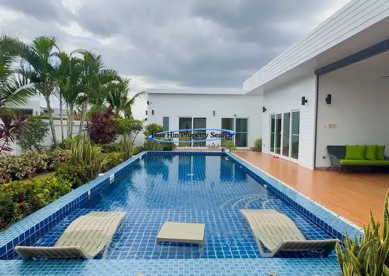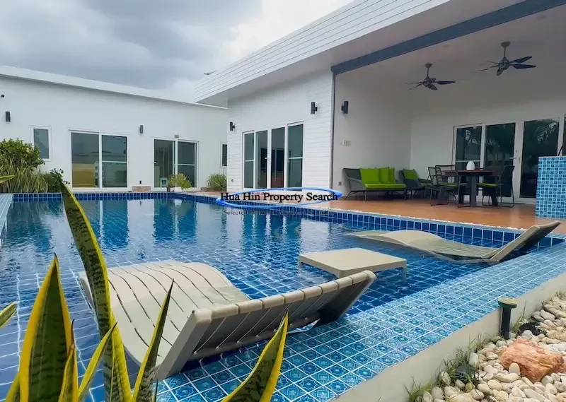 Современная вилла L-образной формы с 3 спальнями и бассейном в комплексе MODA Hua Hin Soi 112 — полностью меблирована.