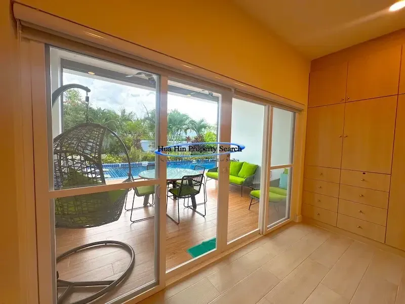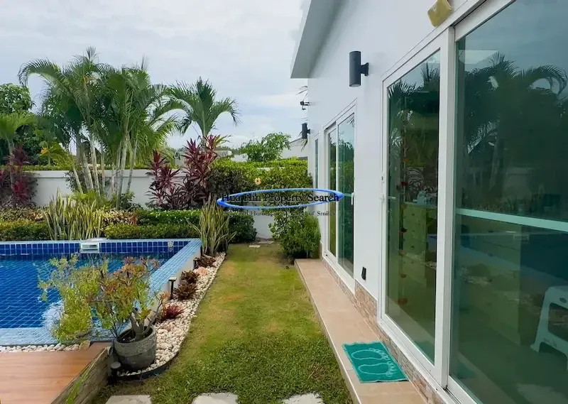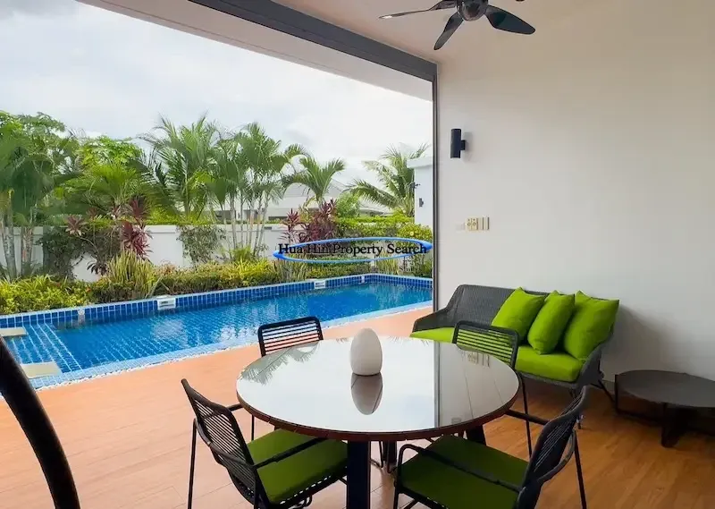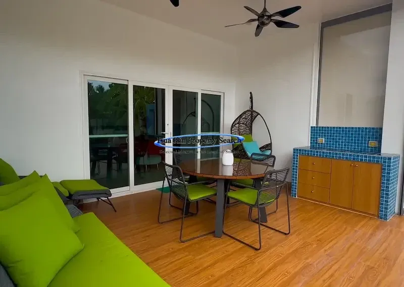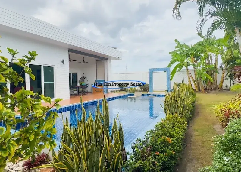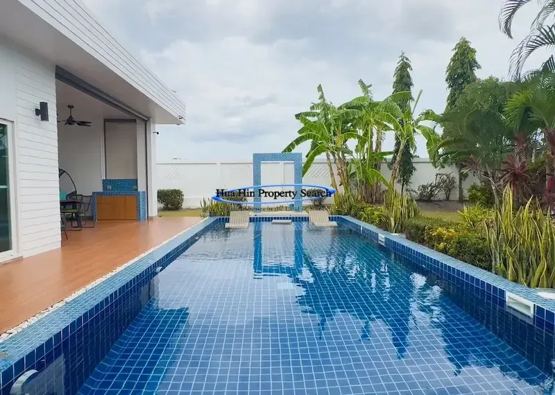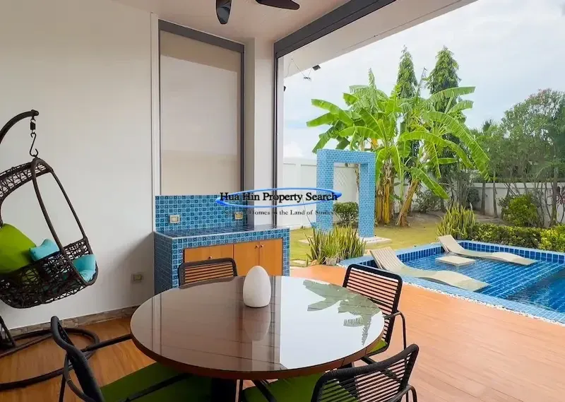 Современная вилла L-образной формы с 3 спальнями и бассейном в комплексе MODA Hua Hin Soi 112 — полностью меблирована.
