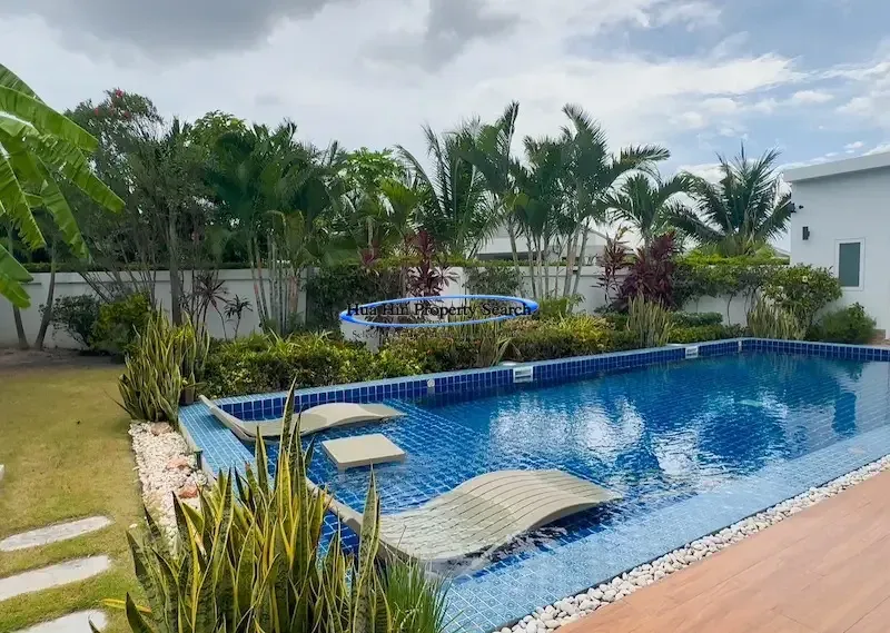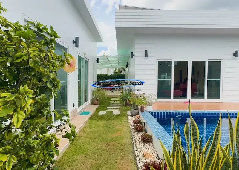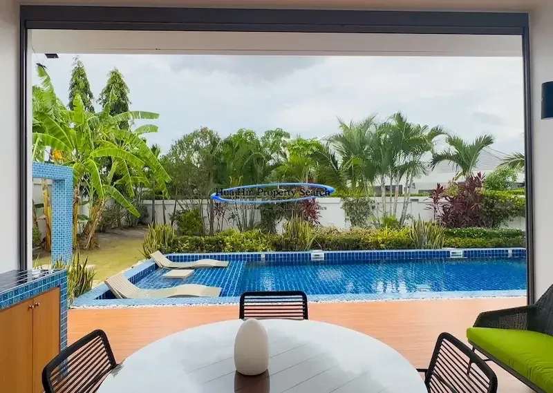 Ощутите современную тропическую жизнь в этой стильной вилле L-образной формы с бассейном, расположенной в эксклюзивном комплексе MODA на улице Hua Hin Soi 112. Эта великолепно спроектированная вилла, строительство которой было завершено в 2023 году, предлагает комфорт, уединение и экологичность в одном из самых удобных и быстрорастущих жилых районов Хуахина.