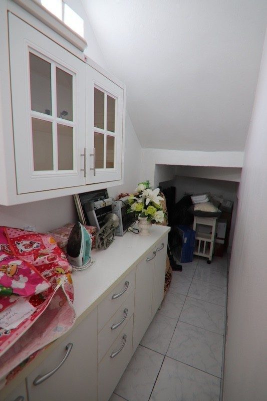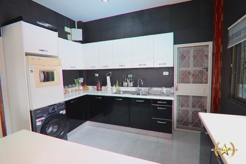 ห้องครัวหนึ่งห้องทำหน้าที่เป็นพื้นที่ซักรีดและทำอาหารรวมกัน