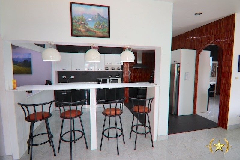 การออกแบบแบบเปิดโล่งซึ่งครอบคลุมพื้นที่รับประทานอาหารกว้างขวางและห้องครัวพร้อมอุปกรณ์ครบครัน 2 ห้อง: