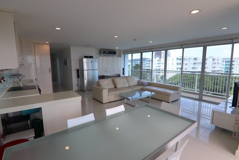 Number of Rooms: 3 Bedrooms, 2 Bathrooms, 1 living/dining/kitchen (open floor plan), wrap-around balcony